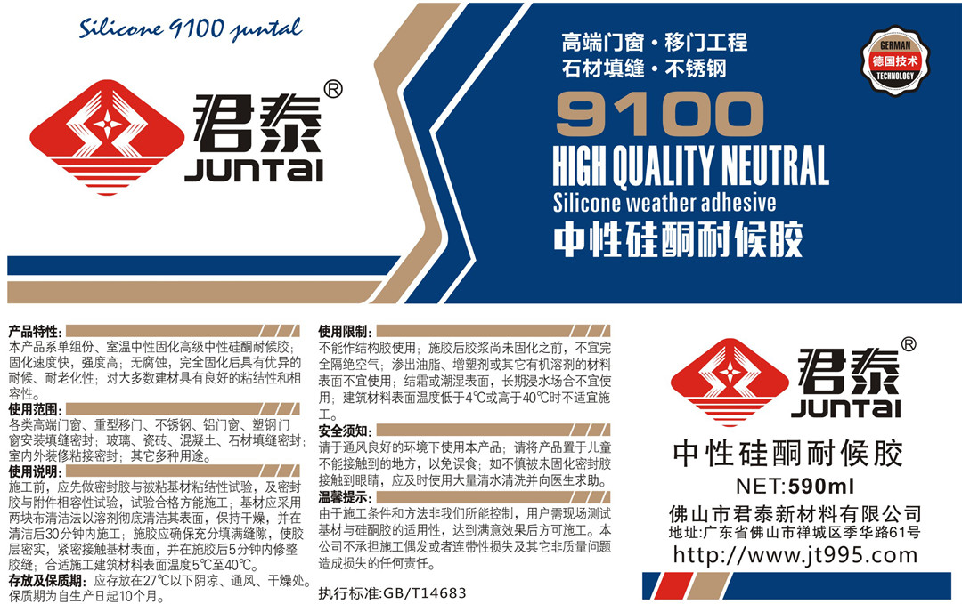 產品特性:本產品系單組份、室溫中性固化高級中性硅酮耐侯膠;固化速度快,強度高;無腐蝕,完全固化后具有優異的耐候、耐老化性;對大多數建材具有良好的粘結性和相容性。