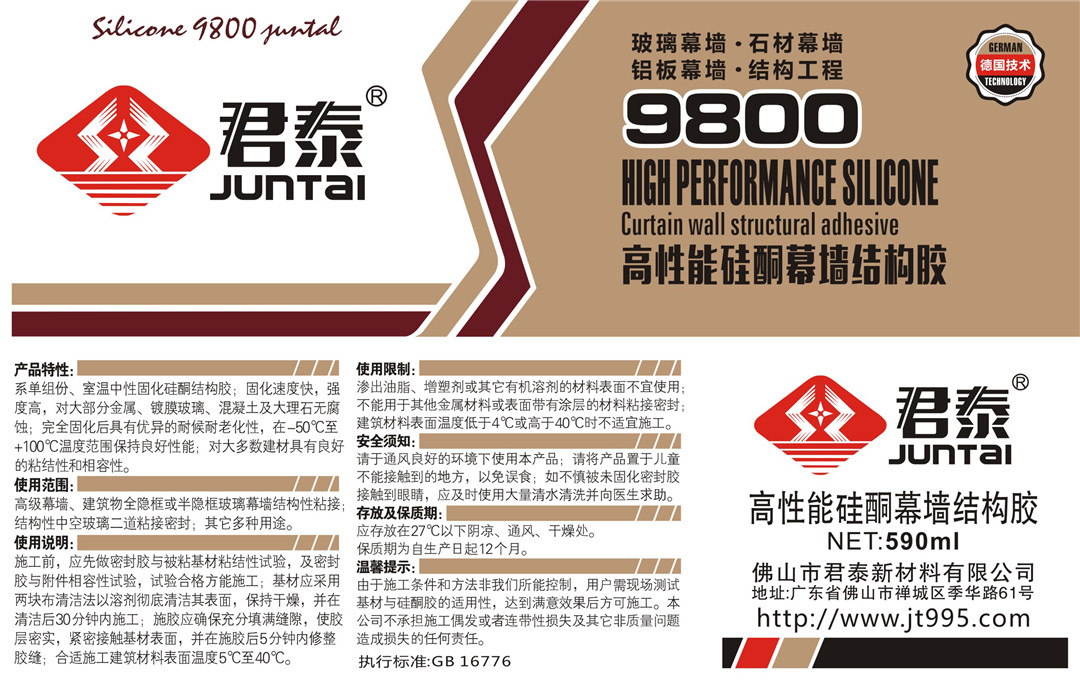 使用范圍:高級幕墻、建筑物全隱框或半隱框玻璃幕墻結構性粘接;結構性中空玻璃二道粘接密封;其它多種用途。