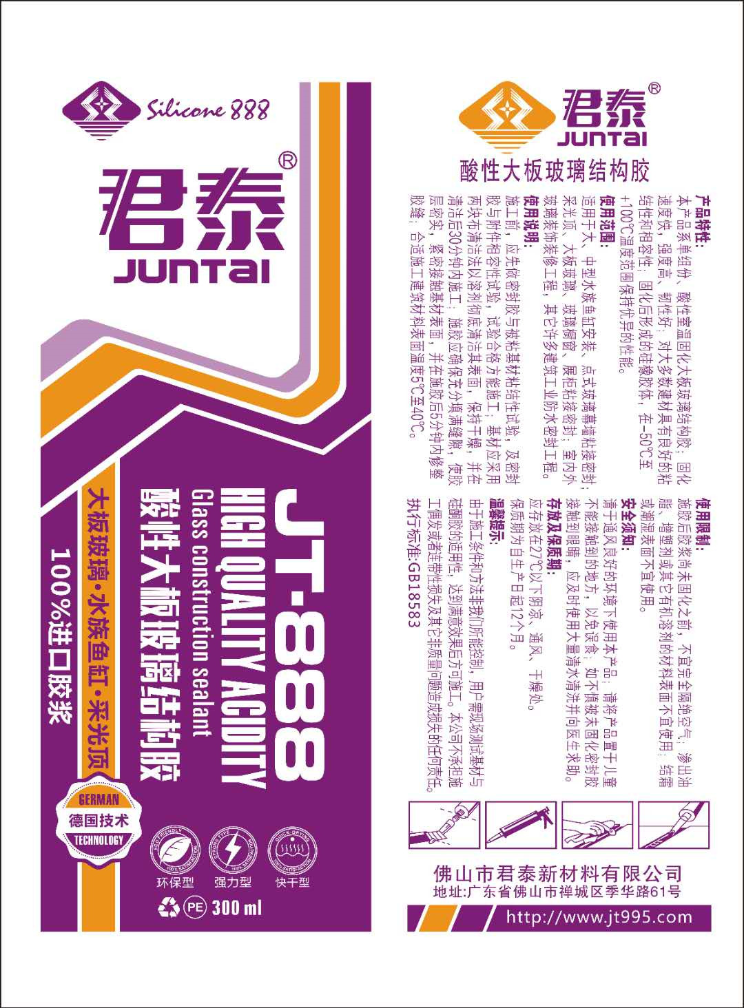 產品特性:本產品系單組份、酸性室溫固化大板玻結構膠;固化速度快,強度高、韌性好;對大多數建材具有良好的粘結性和相容性;固化后形成的硅橡膠體,在-50℃至+100℃