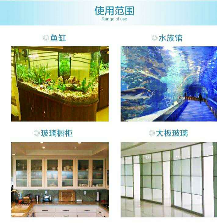使用范圍:適用于大、中型水族魚缸安裝、點式玻璃幕墻粘接密封;采光頂、大板玻璃、玻璃櫥窗、展柜粘接密封;室內外玻璃裝飾裝修工程,其它許多建筑工業防水密封工程。